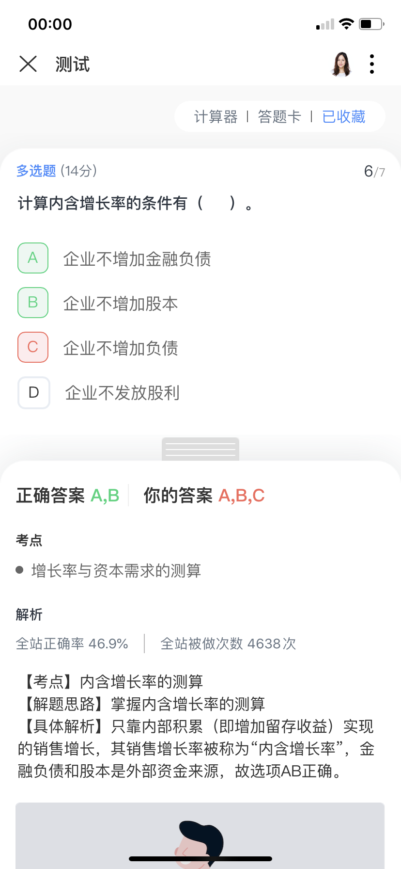 请问附件题目为什么不能选C?是因为负债包括有息负债跟无息负债,内含增长时可以增加无息负债么?