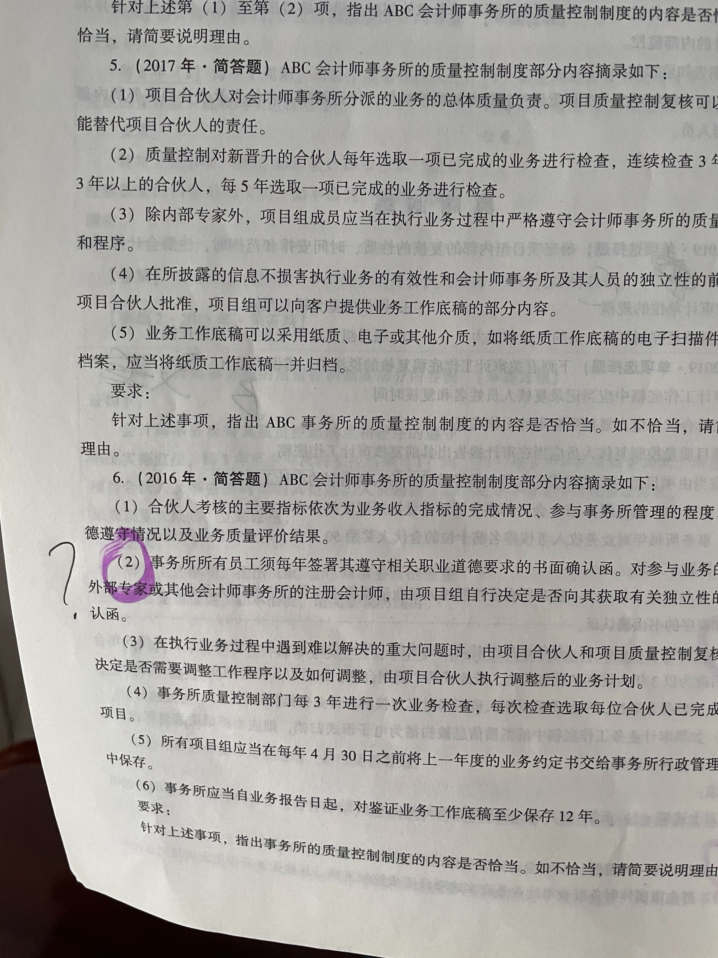第六题 对于外部专家 本身就不遵守质量控制政策 不用达成一致...