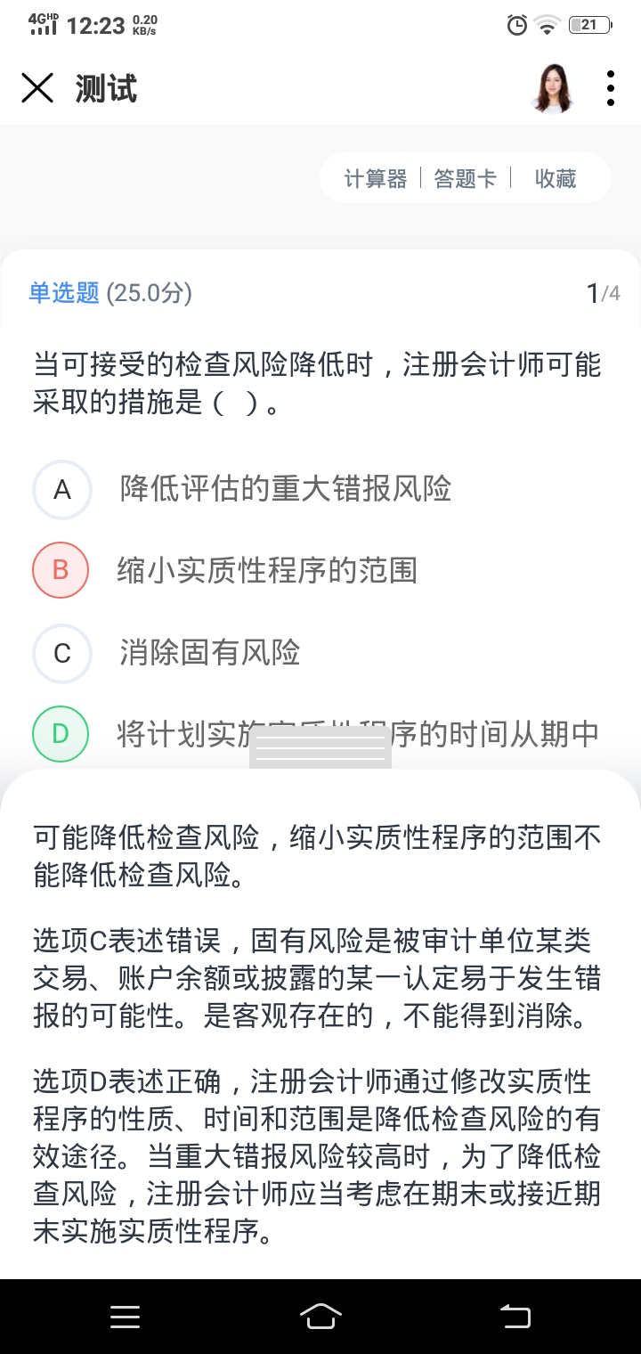 这道题题目中说的是当可接受的检查风险降低时, 时 ,那就是风险已经降低了吧,难道不应该缩小范围?