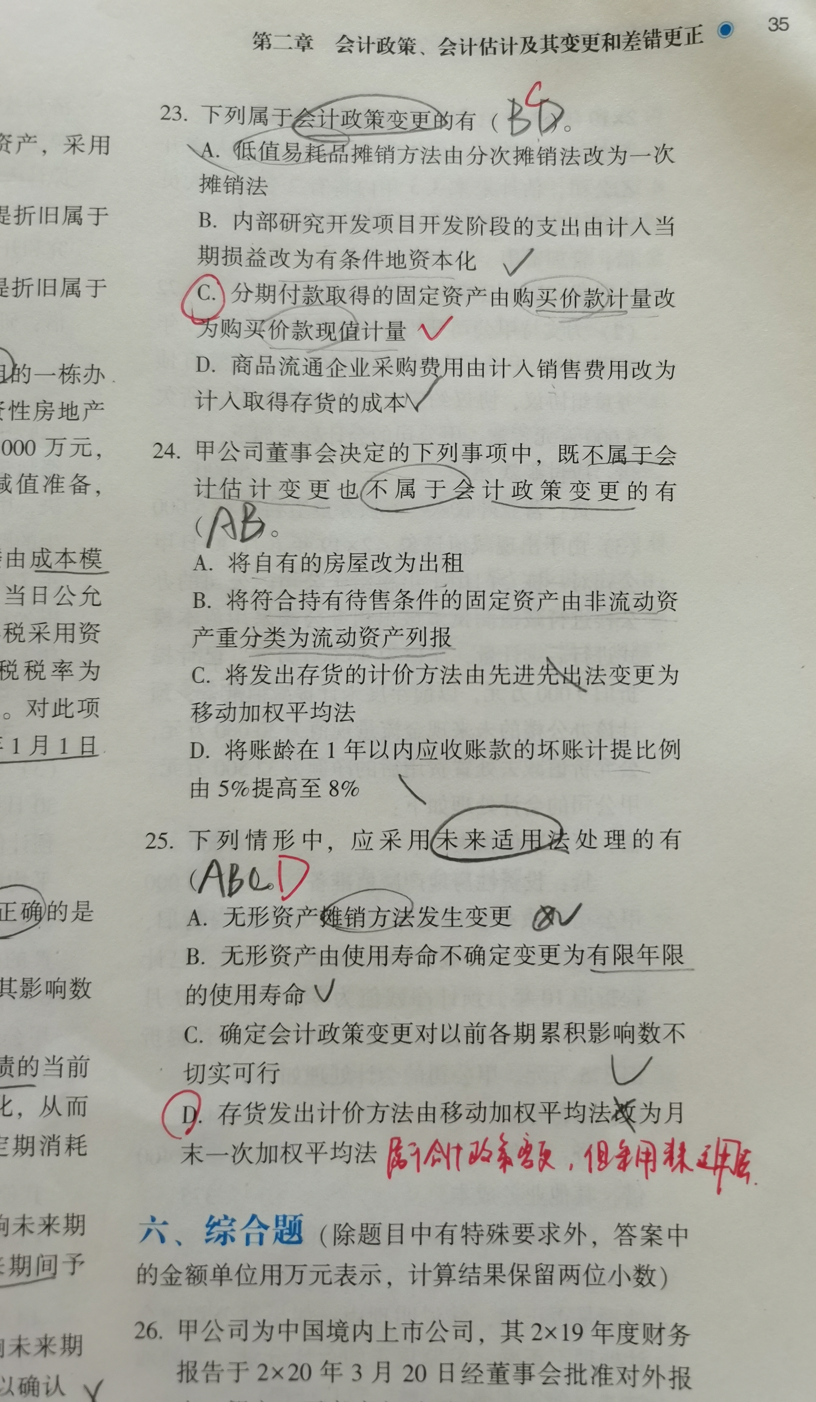 这需要你牢记c选项的表述,他是准则中的一句原话。确定为会计政策变更但对前期累计影响金额无法可靠计算应当采用未来适用法核算