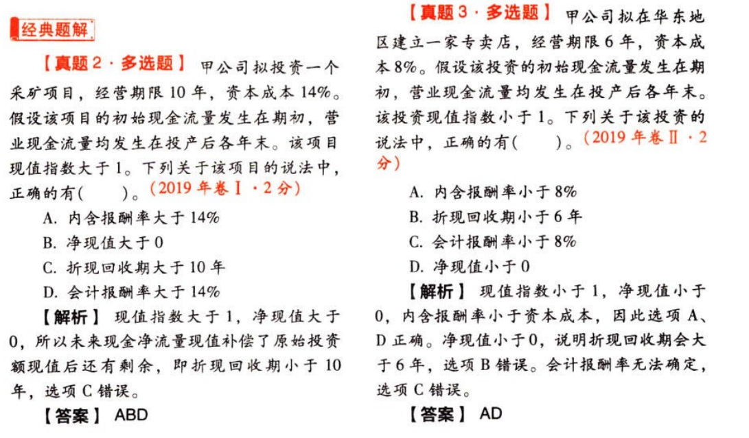 第1个题实际上是不能判断会计报酬率的,但是中注协给出的答案中有D,这里确实是一个bug,不要纠结它。