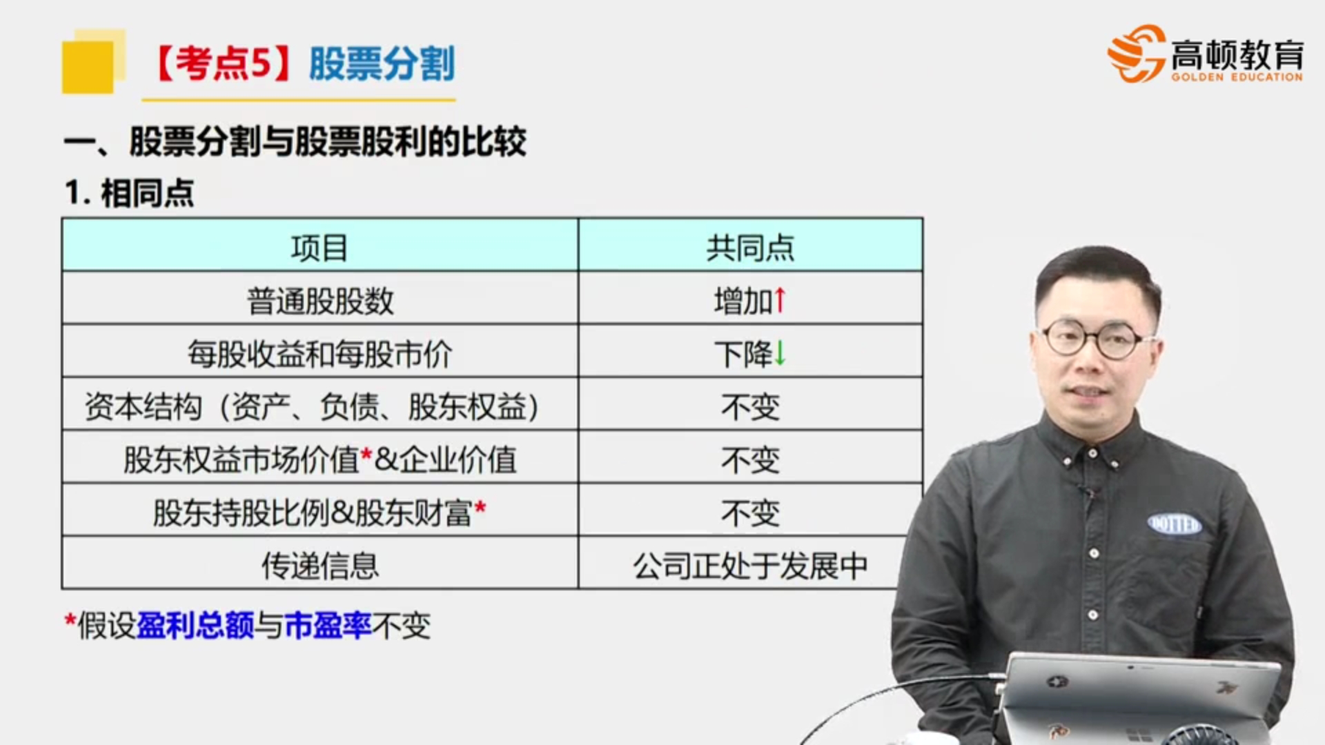 如果不考虑市盈率不变,股东权益的市场价值不变这个结论会改变,因为实务中股票分割或发放股票股利后的每股市价会略高于理论上的每股市价。