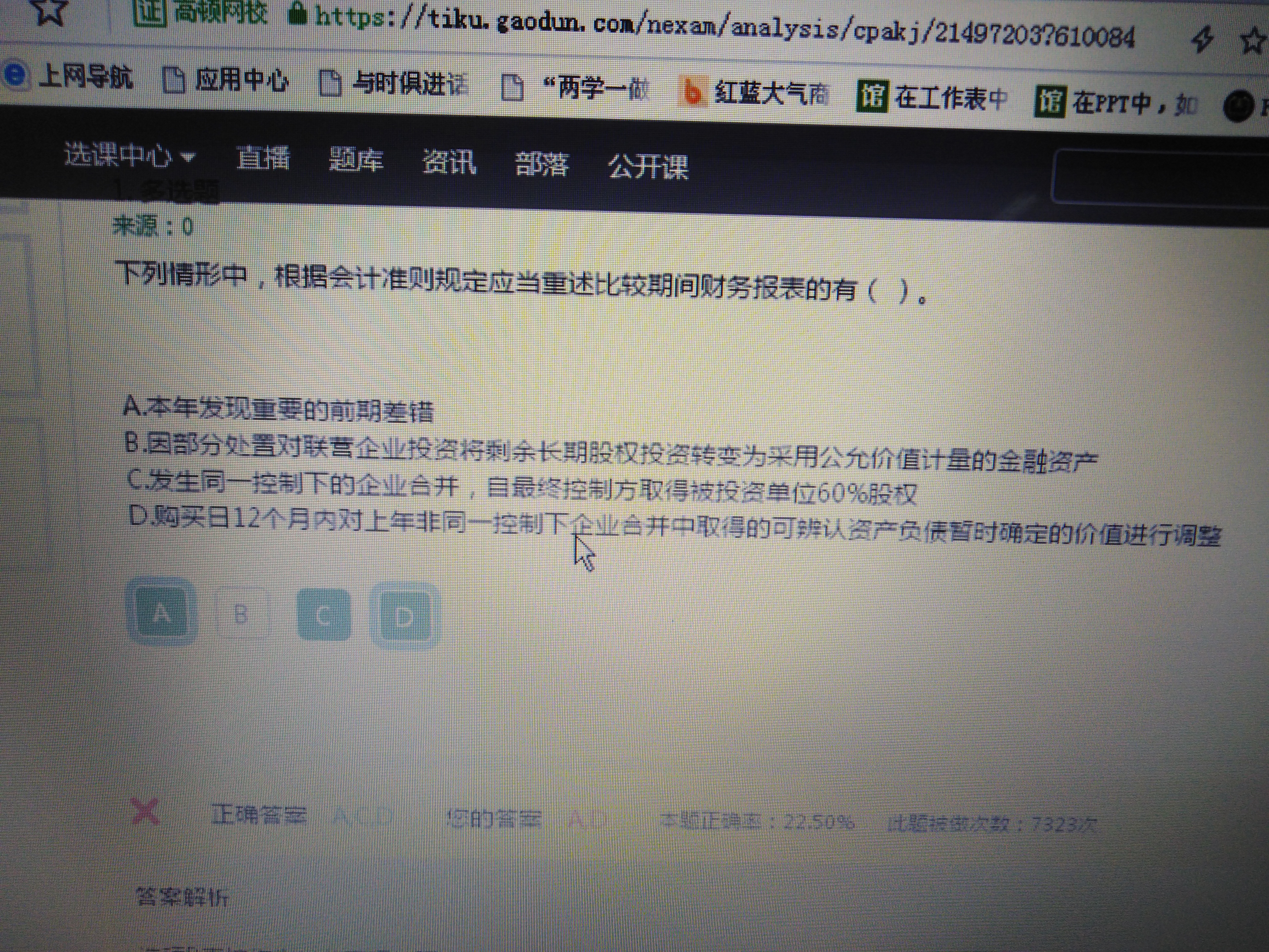 C是同控下基于一体化存续原则,恢复母公司持有期间的留存收益,重述就是需要追溯留存收益。