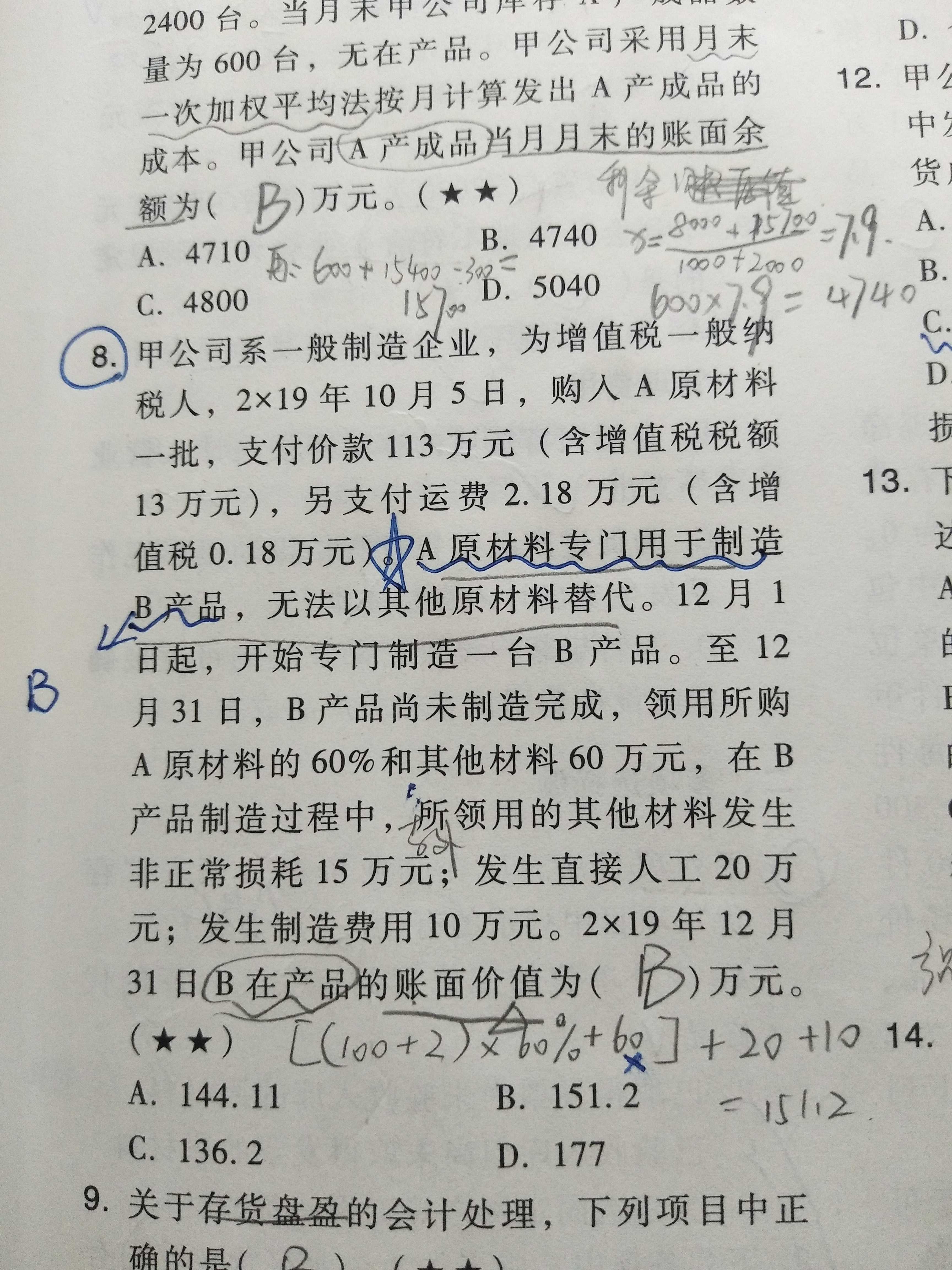 存货管理中要求计算平均占用资金利息时,为什么只计算材料购买价...