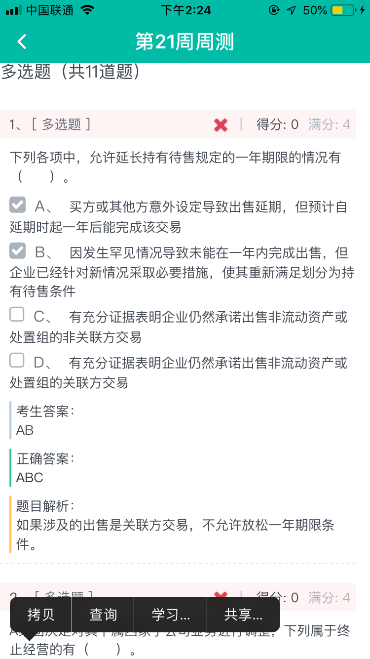 会计单选题怎么能选AB?考题答案出错了?...