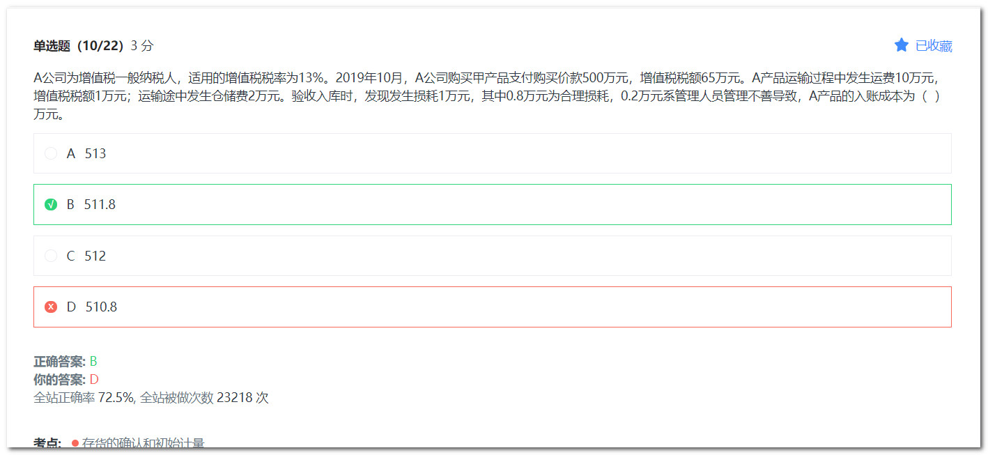 老师这里的c选项为什么计入存货成本了 上一题却不计入呢?...