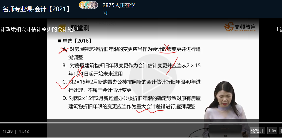 这道题的ABD选项都用会计估计变更来解释的,但是正确答案却是...