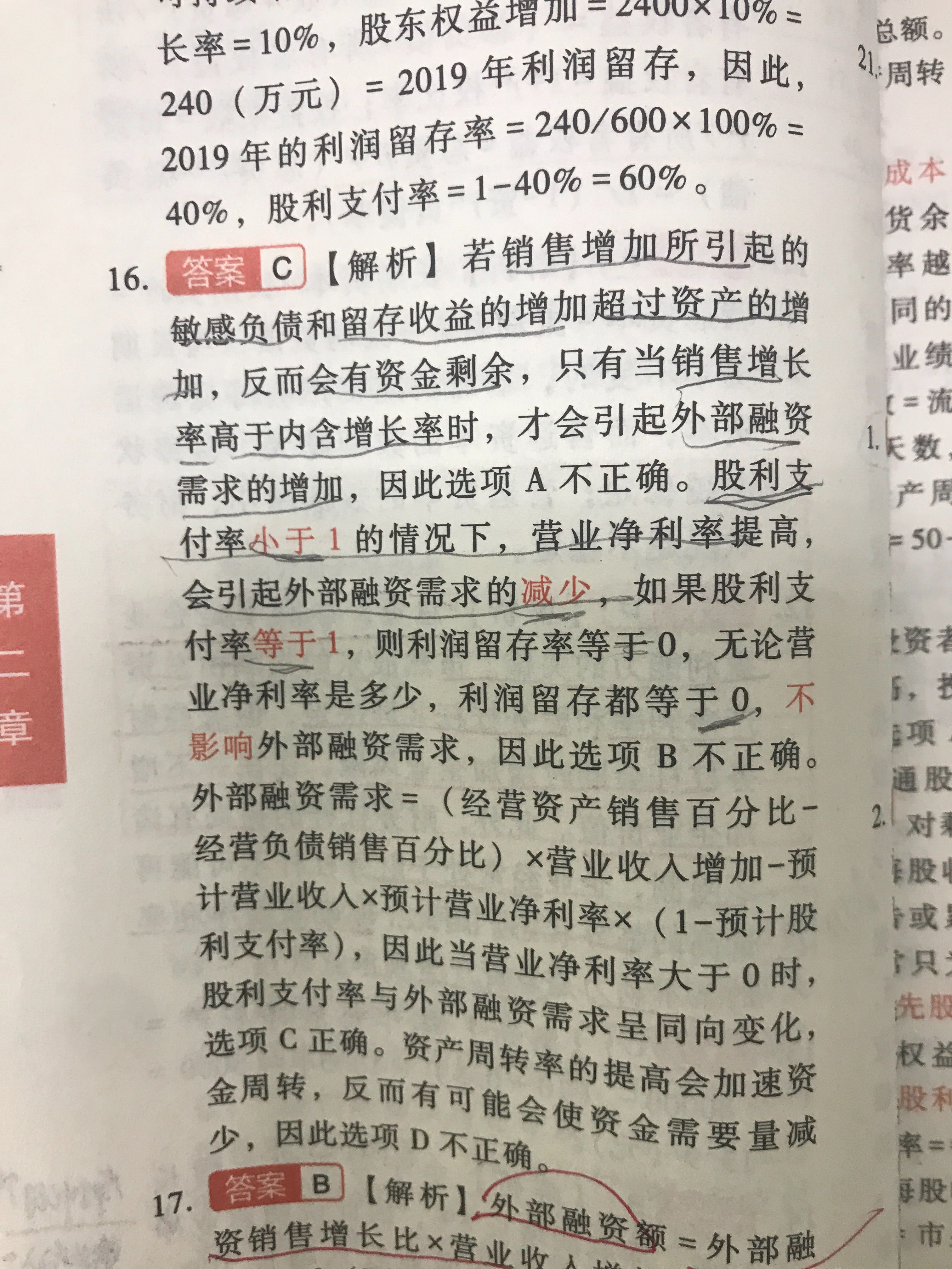16选项B的解析,在股利支付率小于1的情况下,营业净利率提高,怎么会引起外部融资需求减少啊?