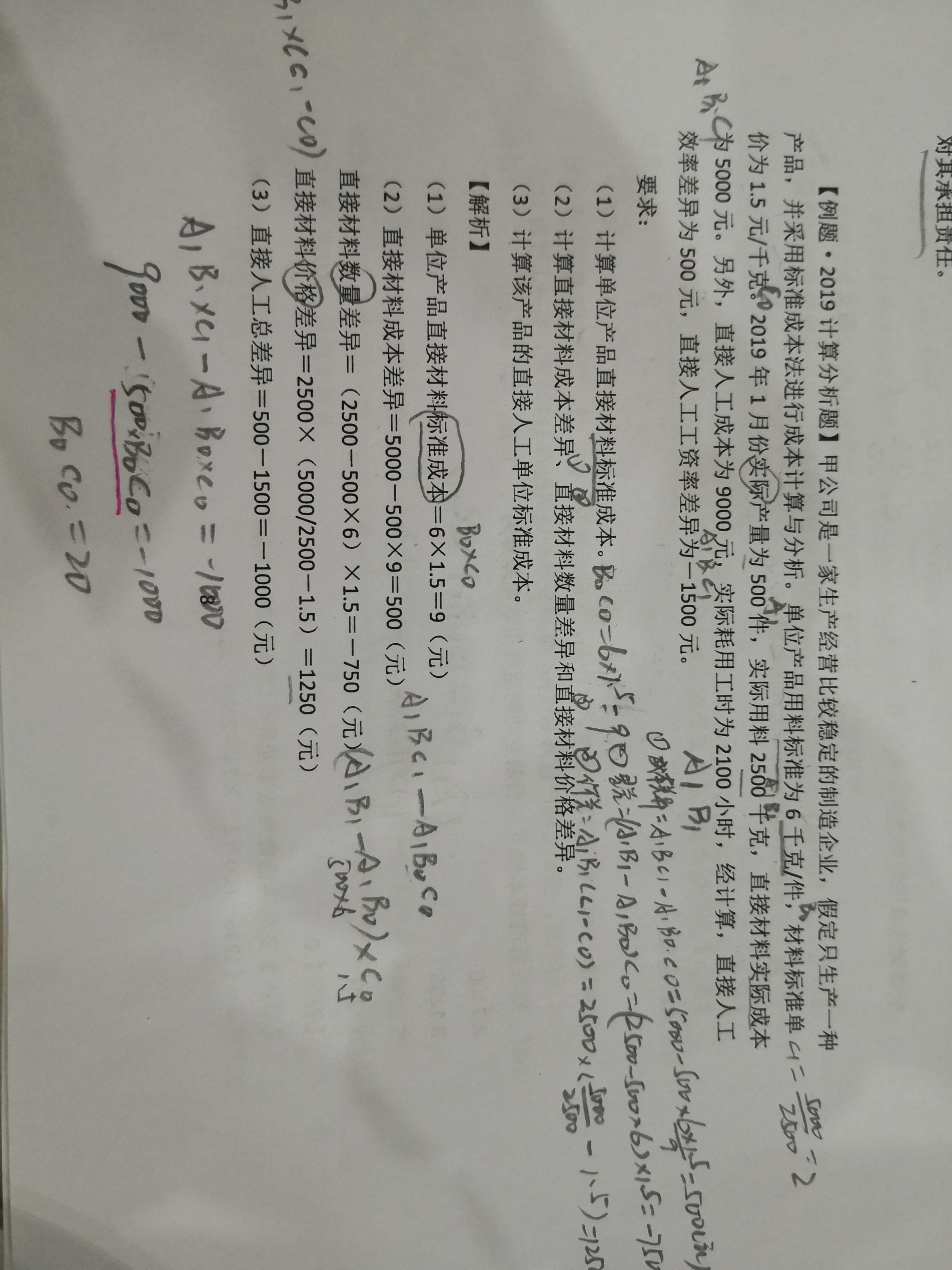 第三小问的问题与答案不一致,应该是勘误问题哈,直接人工单位单位标准成本=每小时工资×标准工时。
