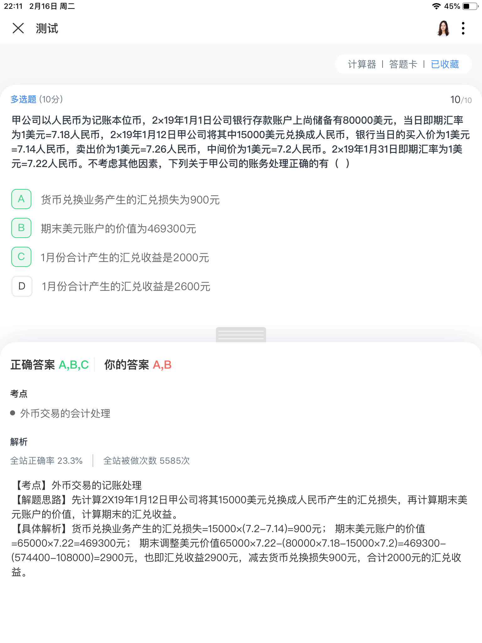 选项c,为何不是直接用6500x(7.22-7.18),然后再减去900的汇兑损失