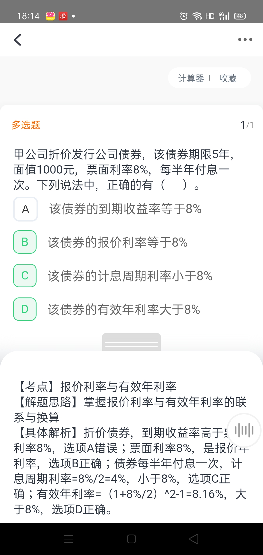 税前资本成本不是有效年利率嘛,票面利率是报价利率,怎么不用折...