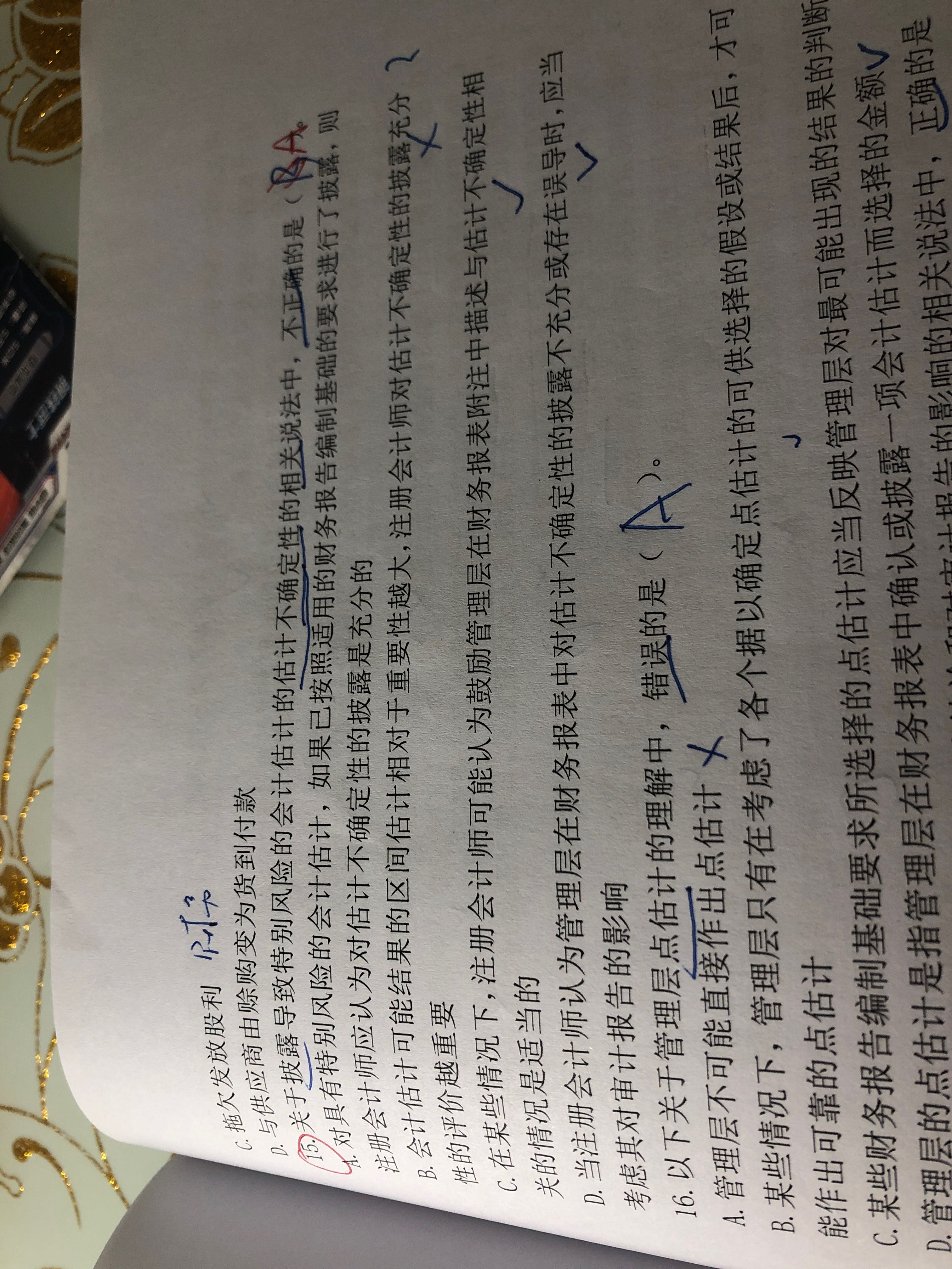 老师,单选题会计估计的不确定性,D选项中会计估计与实际结果之...
