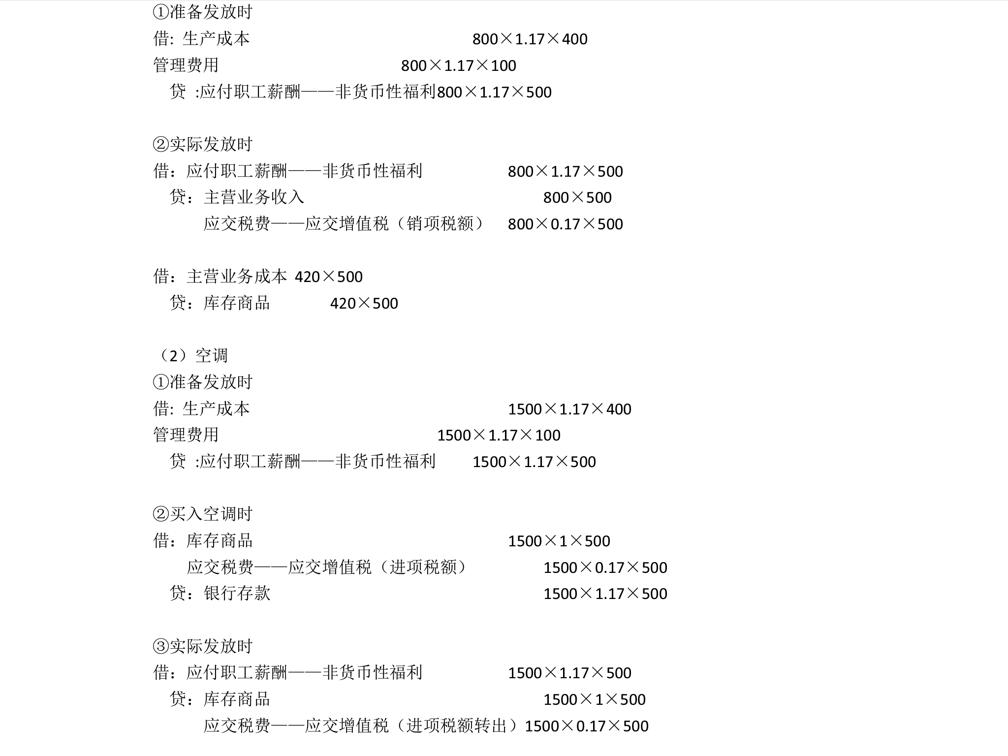 第二部分空调是外购的,那么购买空调的所有钱(进项税转出)都要计入职工福利