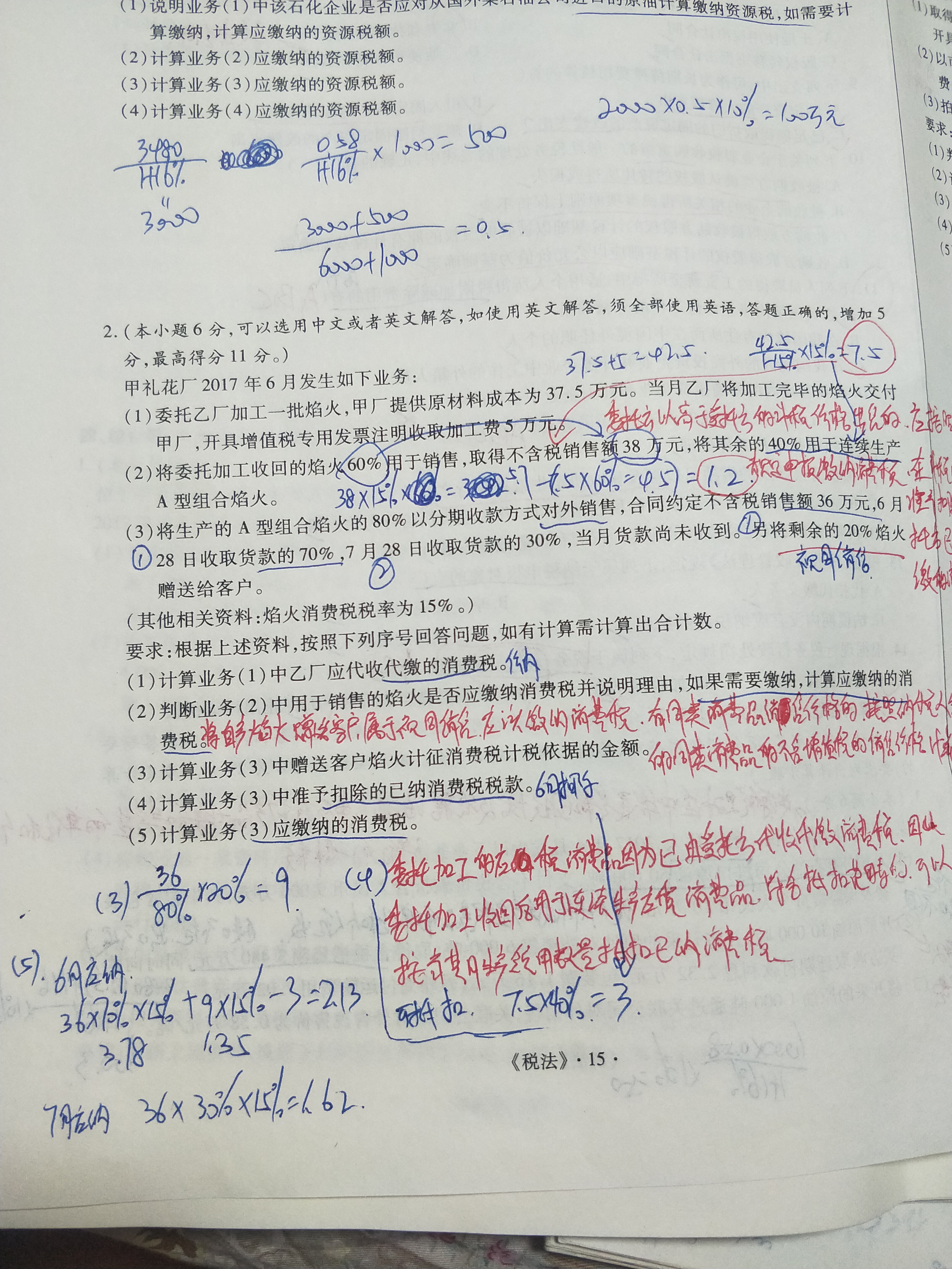 老师这道计算题,资料3组合烟火对外销售和送客户,对外销售的部分根据合同约定计算消费税,可抵扣的部分不用考虑和合同同步抵扣吗,答案里面抵扣的部分放在6月一起抵扣了