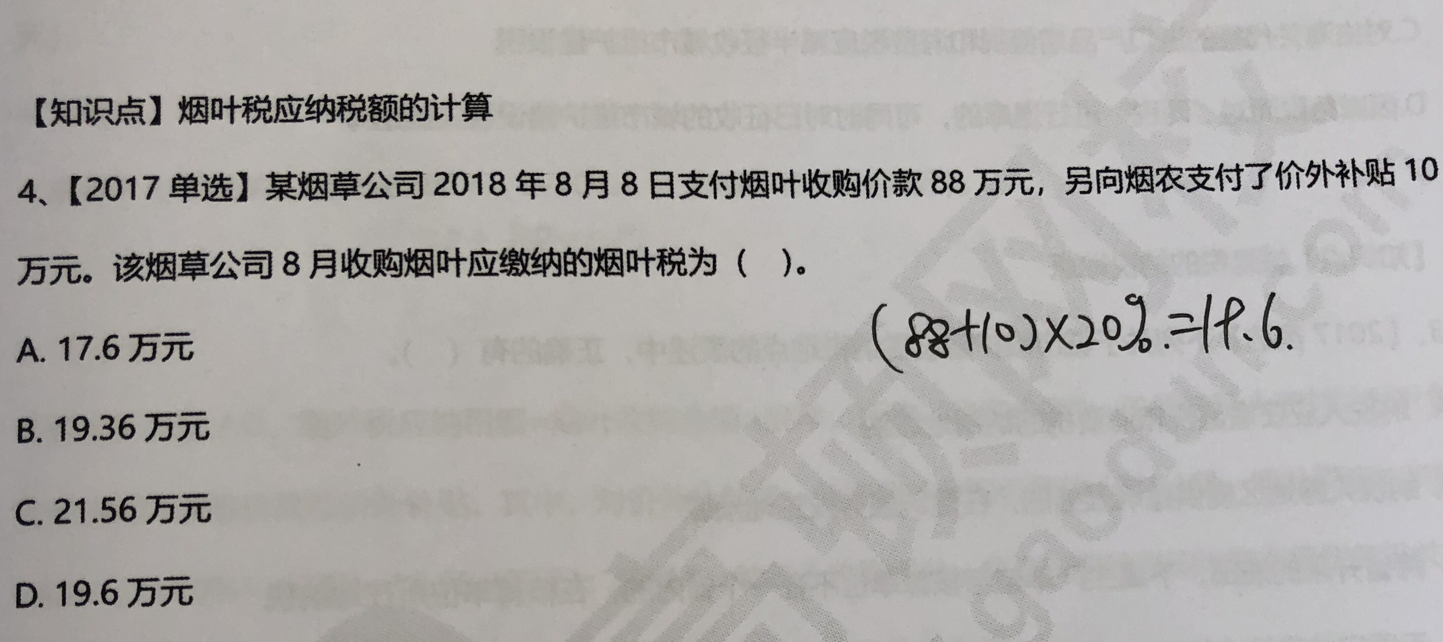 在计算烟叶税的时候,价外补贴统一按照规定的10%的比例计算。