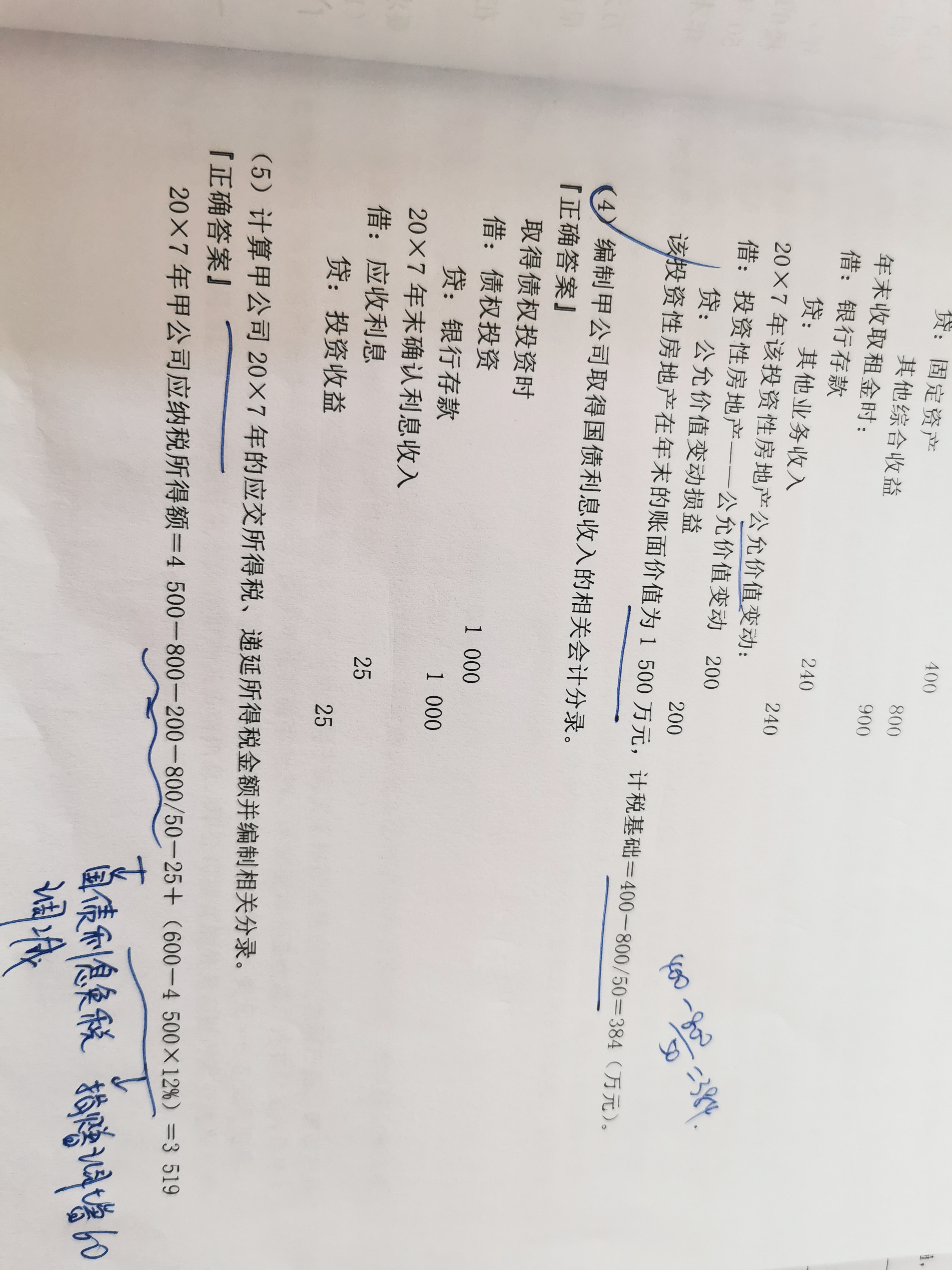 -800/50 是投资性房地产的折旧,会计上不折旧,但是税法上需要折旧。