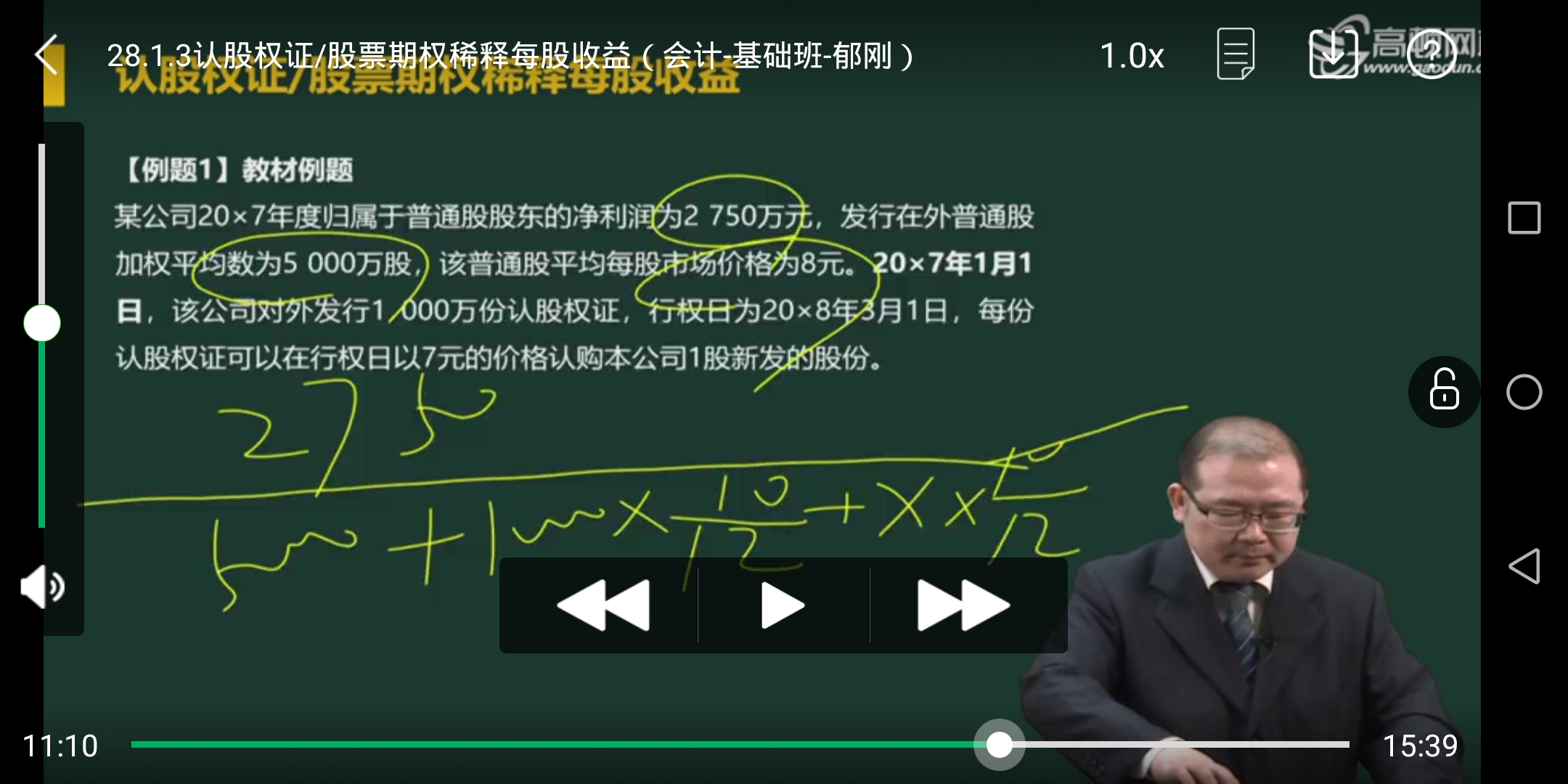 1000*10/12,没有行权之前是2个月,行权之后就是实实在在发行的股票数量1000,乘剩余的10个月,另外后面是老师笔误,应该是x*2/12。