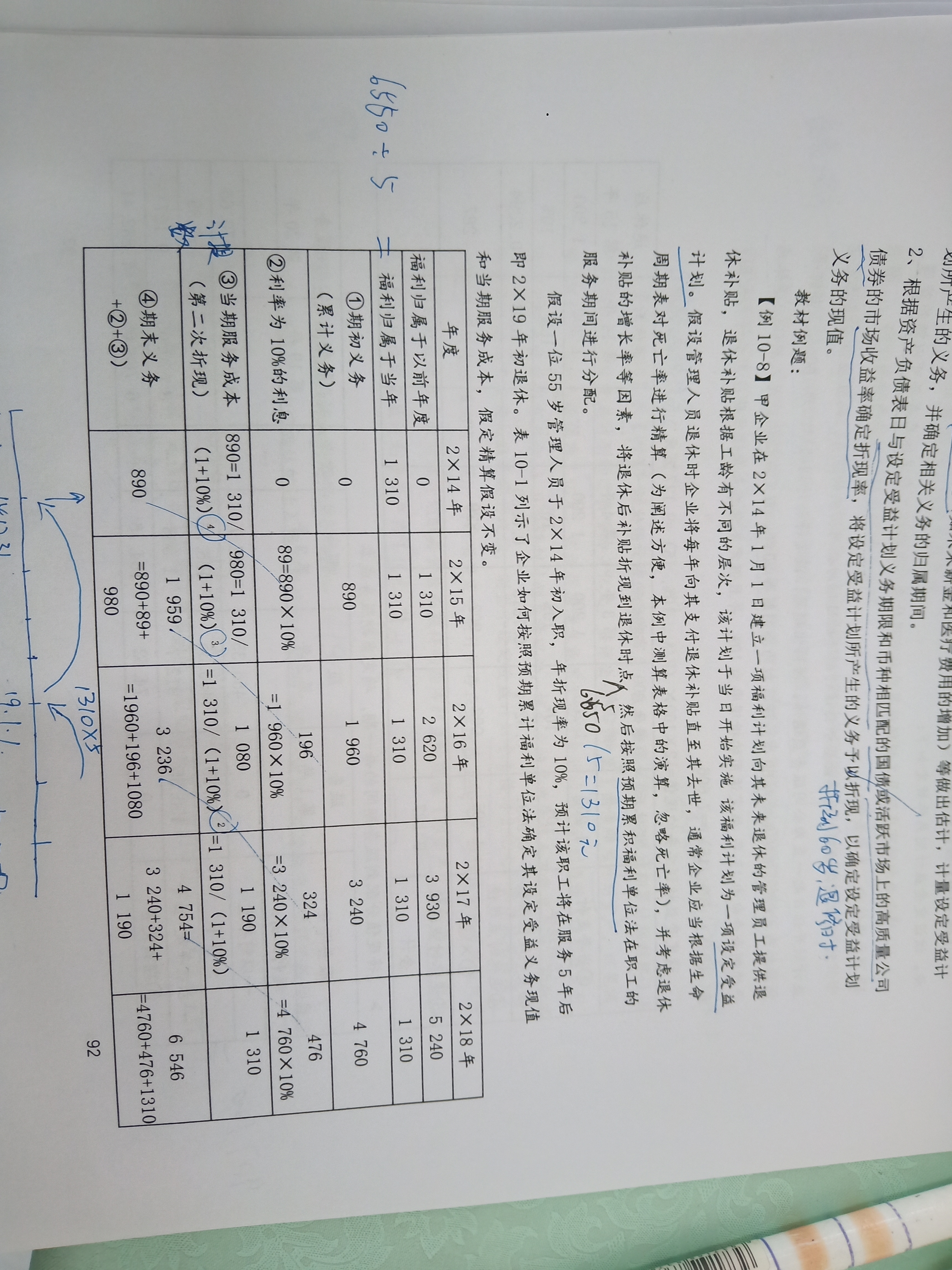 10-12是什么意思???承认了14年的服务,那么退休时点数还是6550吗???如果还是,为什么要追加服务成本,按15年开始的话,15年的当期服务成本肯定比如果按14年开始的高,那为什么要追加,总数都是6550???