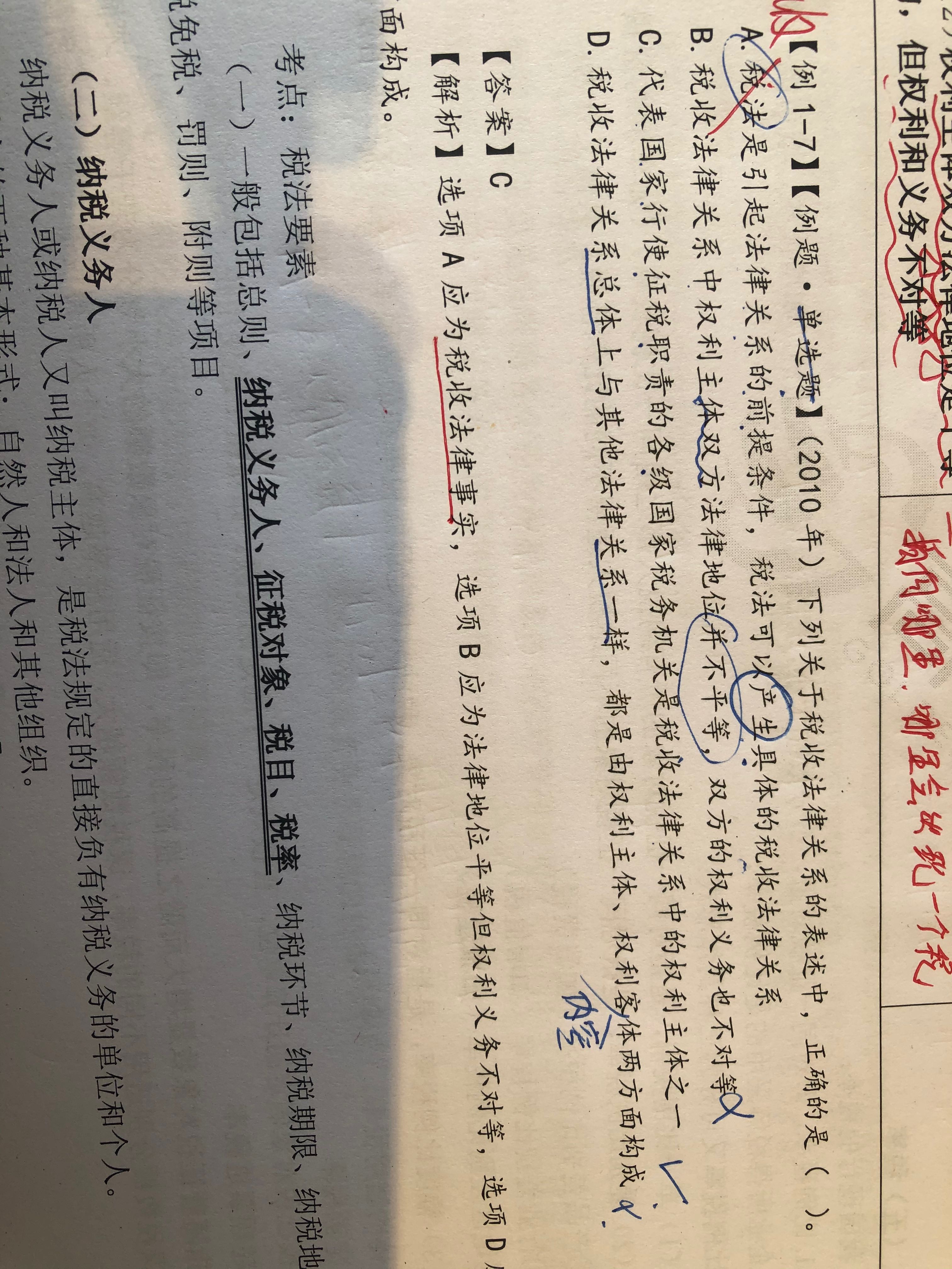 同学你理解的正确的。A前半句对,后半句税收法律事实产生法律的关系。