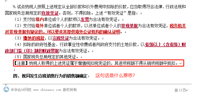 1、这句话是根据财税〔2016〕36号里面说的,试点纳税人按照上述4-10款的规定从全部价款和价外费用中扣除的价款,应当取得符合法律、行政法规和国家税务总局规定的有效凭证。否则,不得扣除;没有完全说是不可以抵扣 ,是说的分情况来判断 ; 比如:向委托方收取的政府性基金或者行政事业性收费,不得开具增值税专用发票,取得了发票也不可以抵扣进项税的;