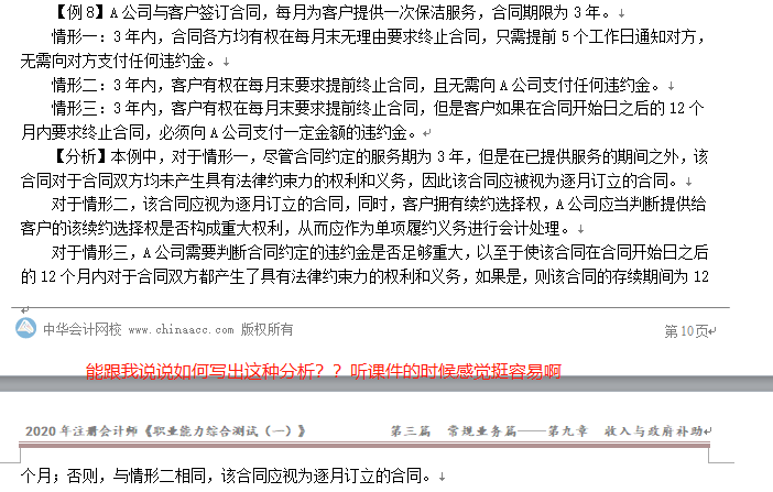 这个题主要考的 续约选择权要不要作为一项“授予客户的重大权利”(即客户购买选择权部分的内容),一般来说如果续约的价格是和市价有很大差异(比市价低)都会算。