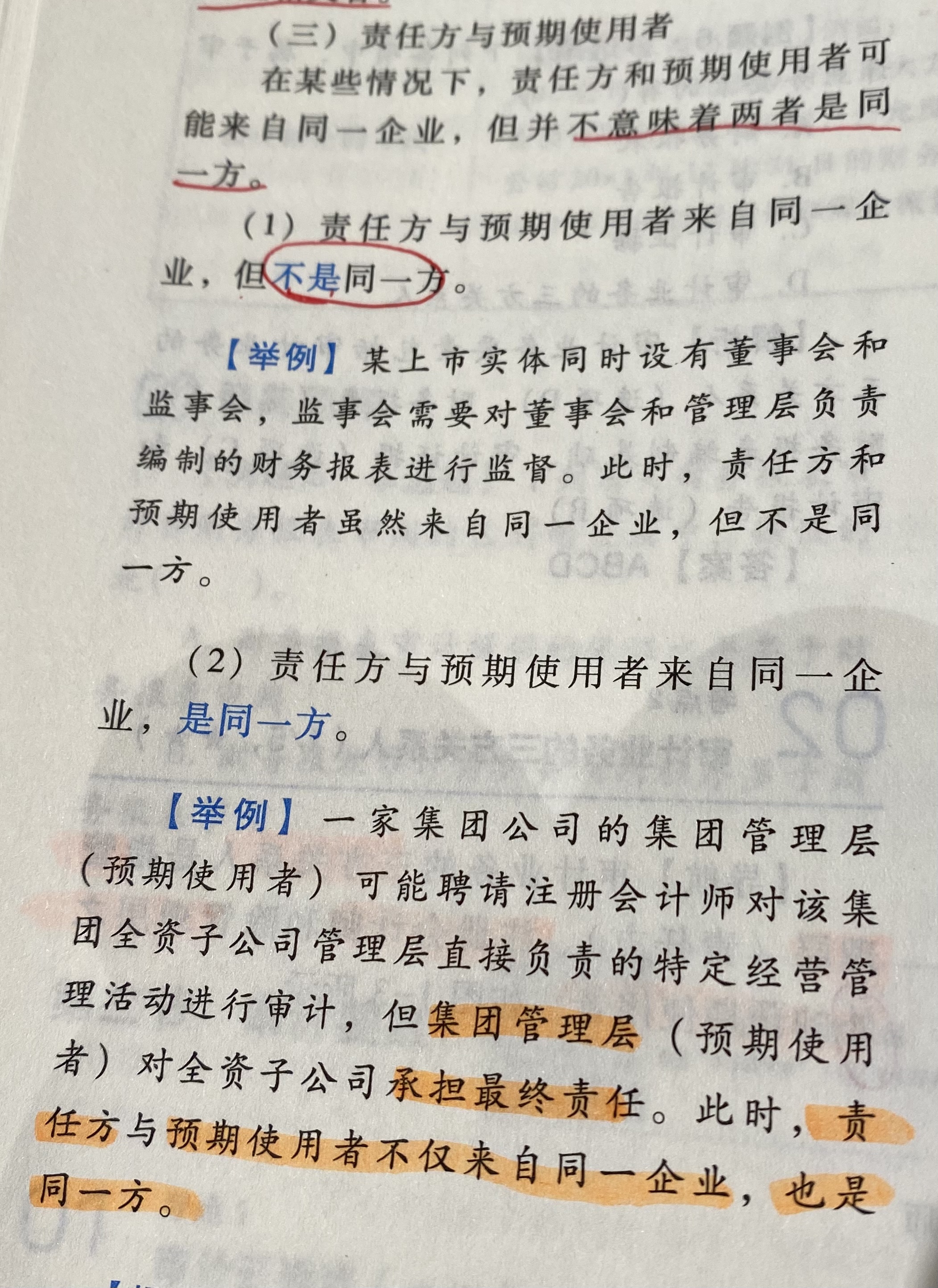 在这个举例中,管理层也是使用审计报告和财务报表的人员,所以是预期使用者之一,但预期使用者还包括企业的股东、债权人、监管机构等,所以还是属于审计~