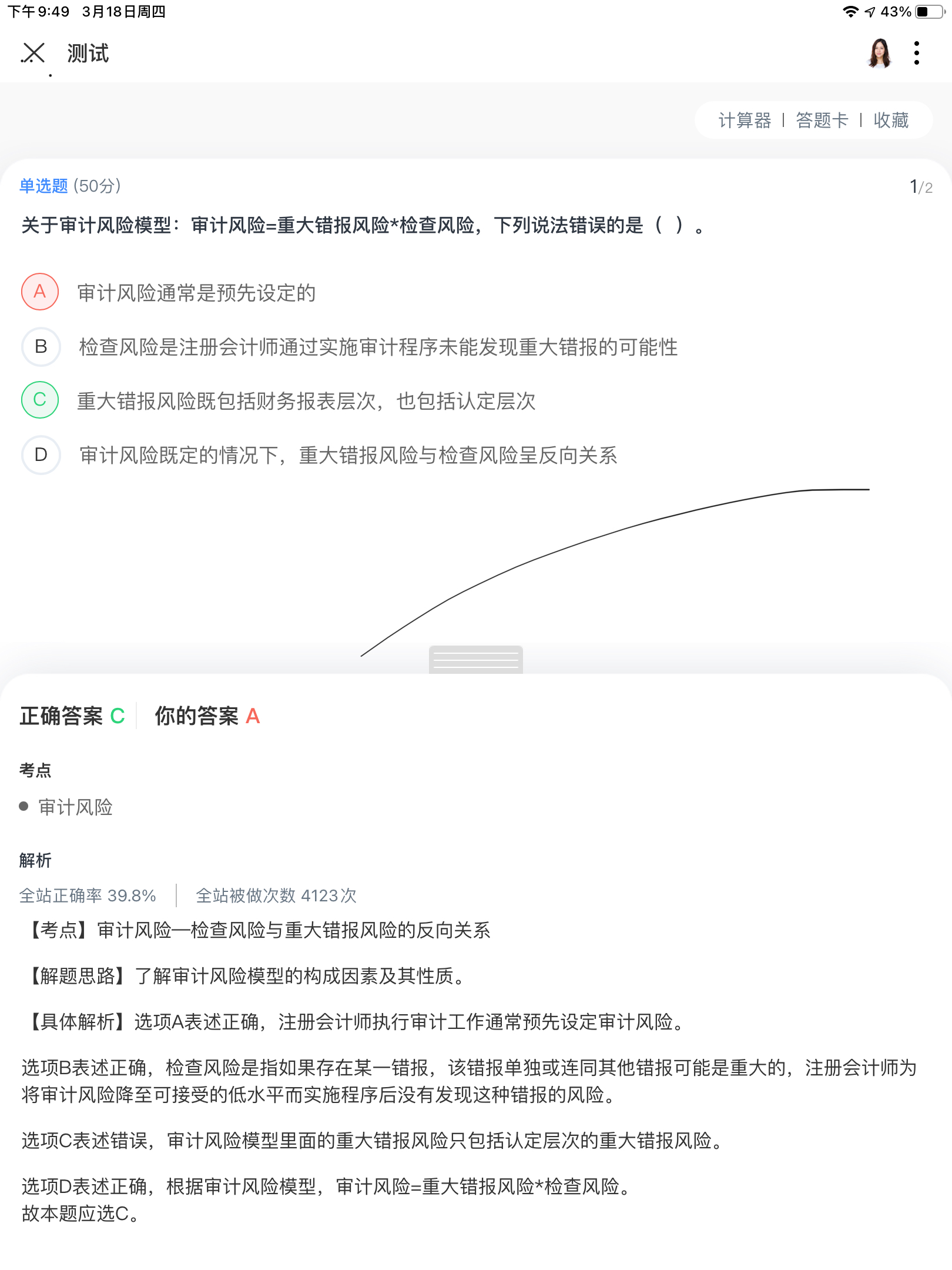 努力的同学你好审计风险模型中的重大错报风险为评估的认定层次的重大错报风险。