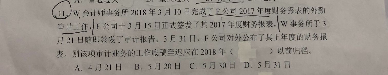 是3月21日发布审计报告的,审计工作底稿应在审计报告日后60天内归档。