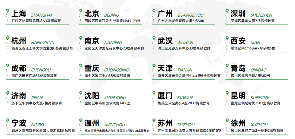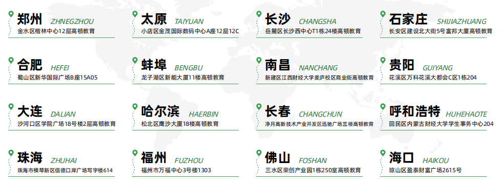 自2006年创立至今,高顿已在全球50多个城市开设了近150家分校及学习中心,与国内外超过400所高校建立了合作关系。服务包括中石油、中国银行、南方电网、阿里巴巴、腾讯、沃尔玛、可口可乐在内的180,000家国内外知名企业,累计帮助超过700万学员实现了年轻梦想。