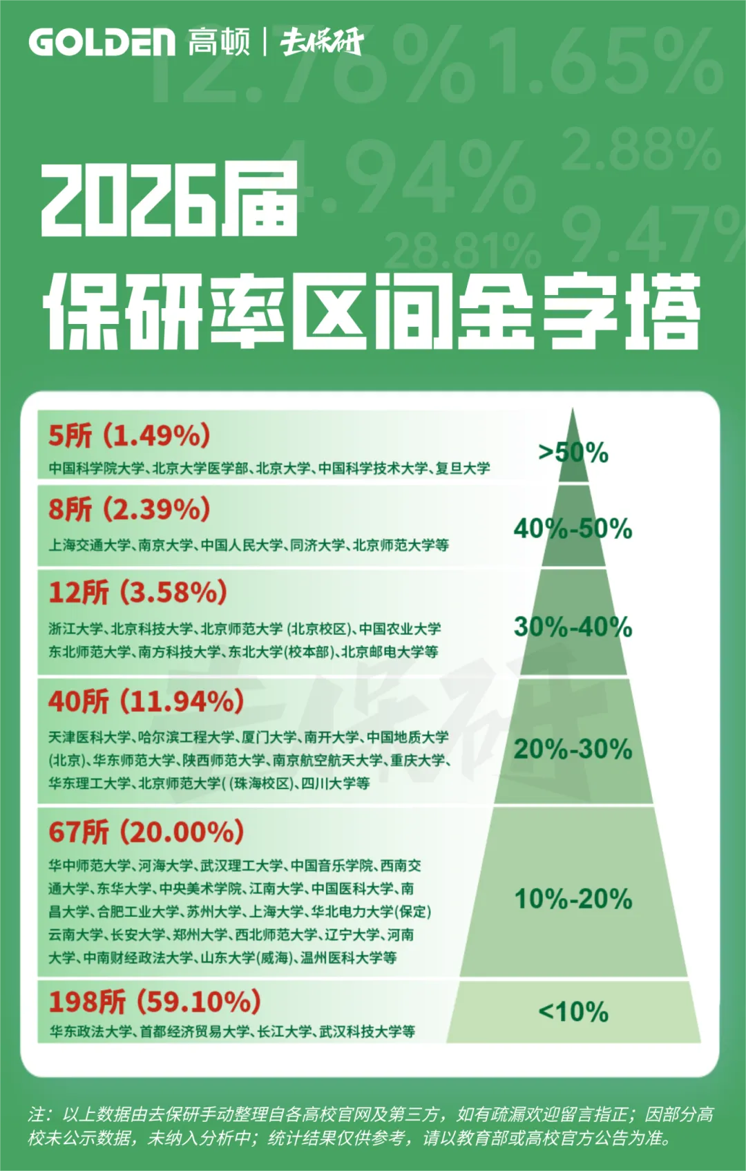 观察2026届各高校保研率分布,我们可以观察到明显的金字塔分层现象。
