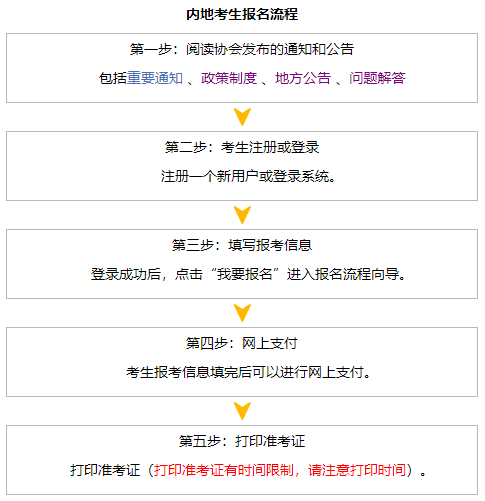 注册会计师考试内地考生报名流程: