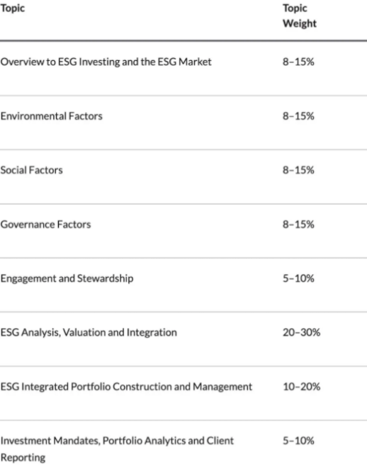 2025-11-06CFA ESG正式更名为CFA SIC可持续投资证书。ESG概念由联合国于2004年提出,2006年出台相关准则。该证书学习内容涵盖ESG投资基本介绍、市场、环境、社会、公司治理、股东参与和尽责管理、分析估值整合、投资组合构建管理以及投资委托等方面,并说明了各章节重点及试题权重。...