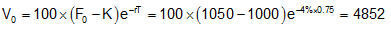 1.A company entered in a one-year forward contract that buying 100 ounces of gold three months ago. When the price was USD 1,000 per ounce. The nine-month forward price of gold is now USD 1,050 per ounce. The continuously-compounded risk-free rate is 4% per year for all maturities and there are no storage costs. The value of the contract is closet to: