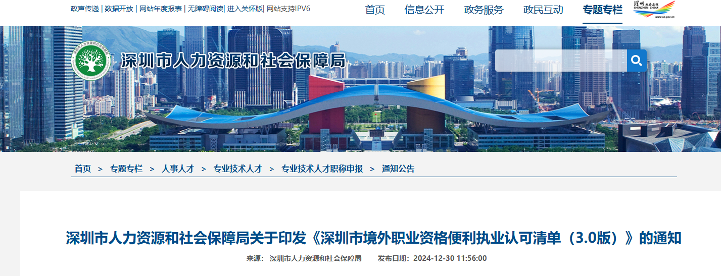 2024 年《深圳市境外职业资格便利执业认可清单(3.0 版)》中,持有《清单》中境外职业资格证书且证书在有效期内的专业人才,可按照相关实施办法在深圳市或深圳市特定区域内(以对应实施办法中明确的实施范围为准)执业,提供专业服务。