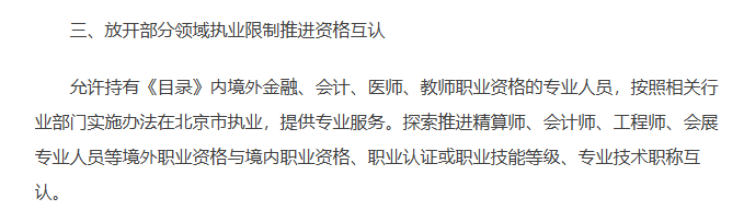 持有该目录内职业资格与在京单位建立人事劳动关系的人员可享受多项便利化服务,如中国籍人员可纳入本市工作居住证办理范围;部分职业资格可对应具备相应系列(专业)中级职称,并可作为申报本市高级职称的条件等 。