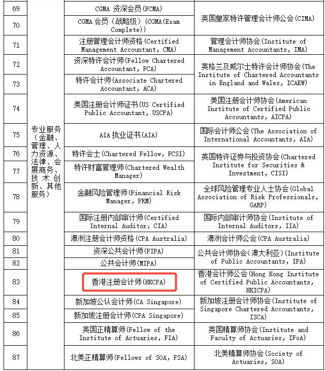 《上海市境外职业资格证书认可清单(2.0 版)》虽未明确阐述 HKICPA 具体对应政策,但将其纳入清单中。对清单内不同类别项目持证人员提供包括外籍人员签证、工作许可、非本市户籍人员居住证积分以及申报考核认定职称等便利保障服务 。