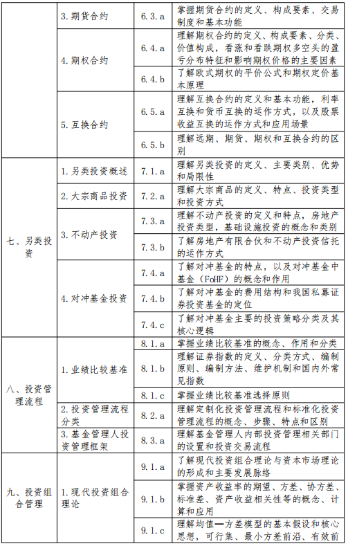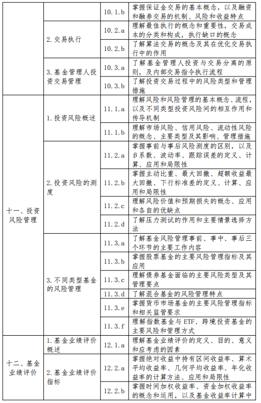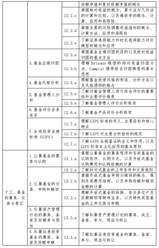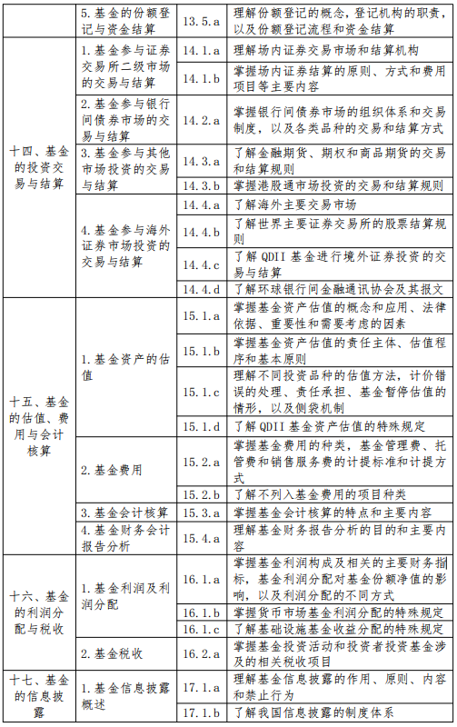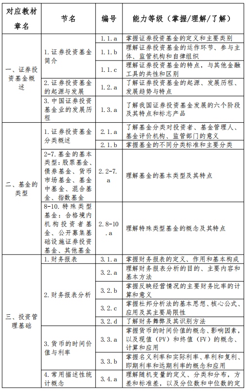 衡量考生对基金基础知识、专业技能和法律法规的掌握程度及应用水平,具体分为以下三个能力等级要求: