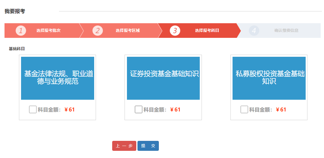 7、在线缴纳报名费(61元/科),缴费成功即报名完成。