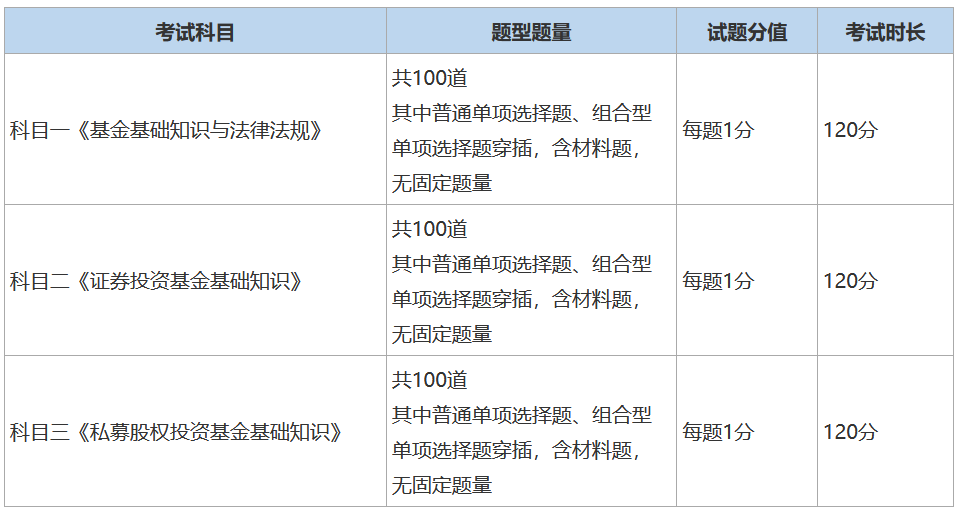2025-10-212025年11月基金从业资格考试启用新版教材大纲,科目名称微调,题型题量暂无调整。科目一为《基金基础知识与法律法规》(原《基金法律法规、职业道德与业务规范》),科目二是《证券投资基金基础知识》,科目三是《私募股权投资基金基础知识》。考试采取闭卷机考,单科120分钟,均为100道单选题,.........
