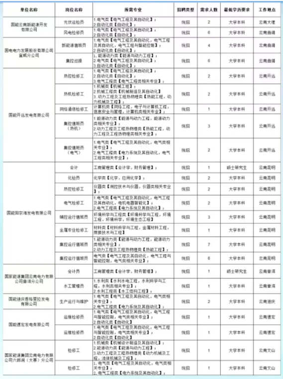 华电云南发电2026年校园招聘公告已经正式发布了,主要招聘2026年应届毕业生,本科及以上学历,主要招聘电气类、能源动力类、机械类、自动化类、计算...