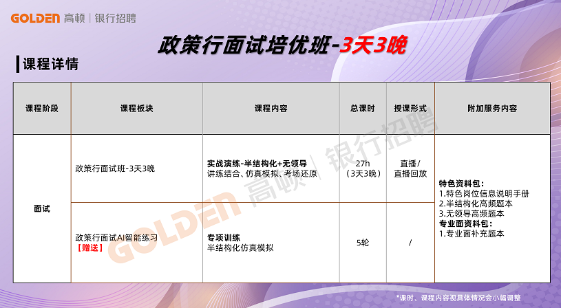 中国农业发展银行面试培训班哪家好?在众多银行面试培训机构中,高顿银行面试班凭借其专业实力和优质服务脱颖而出,多轮实战演练,模拟半结构化和无领导,怎么面怎么学,帮助考生在短时间内提高面试能力,以下是详细介绍。...