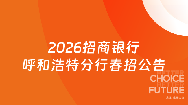 2026年招商银行呼和浩特分行春招公告发布!招聘对象为2026届本科及以上学历毕业生,专业不限,本科生需通过大学英语四级,研究生需通过大学英语六级...