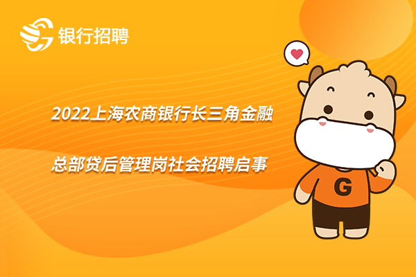 2022-11-08 09:112022上海农商银行长三角金融总部贷后管理岗社会招聘启事已经发布了,想了解更多具体的岗位工作职责、任职要求请看正文! ...