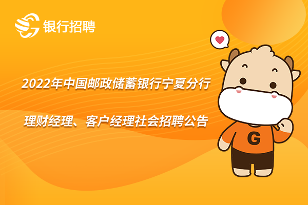 2022-11-08 14:112022年中国邮政储蓄银行宁夏分行理财经理、客户经理社会招聘公告已经发布了,想了解更多具体的岗位工作职责、任职要求请看正文! ...