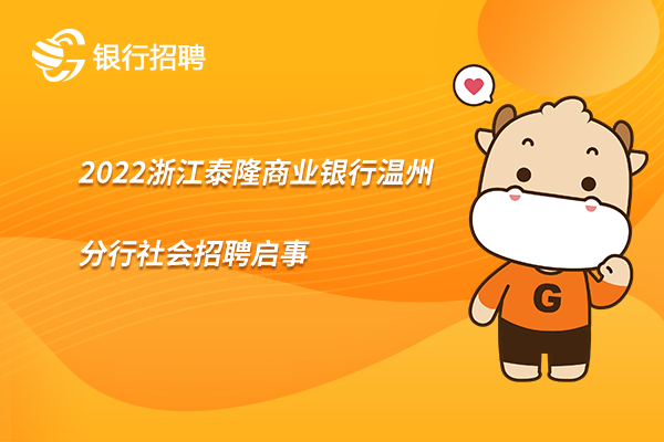 2022-10-21 16:102022浙江泰隆商业银行温州分行社会招聘启事已经发布了,想了解更多具体的岗位工作职责、任职要求请看正文! ...