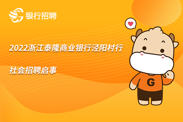 2022浙江泰隆商业银行泾阳村行社会招聘启事已经发布了,想了解更多具体的岗位工作职责、任职要求请看正文! ...