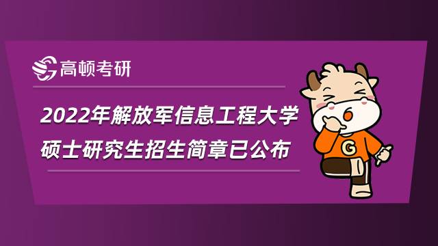 2022解放军信息工程大学硕士研究生考试即将开始,2022解放军信息工程大学硕士研究生招生简章还未发布。这里为大家整理了2021解放军信息工程大学硕士研究生招生简章的内容,供大家参考。有对考试信息不了解的同学,也可咨询研招网考研老师,高顿研招网的老师为大家答疑解惑。