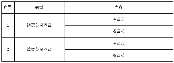考试的范围包括MTI考生入学应具备的英语词汇量、语法知识以及英汉两种语言转换的基本技能。本考试包括二个部分:短语翻译和英汉互译。总分150分。