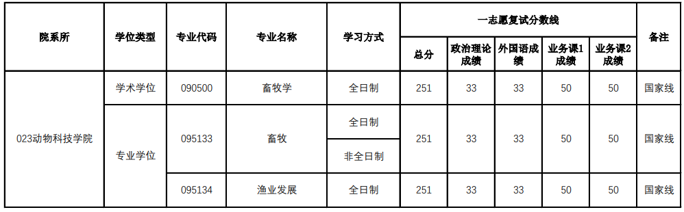 2023河南农业大学动物科技学院考研复试分数线
