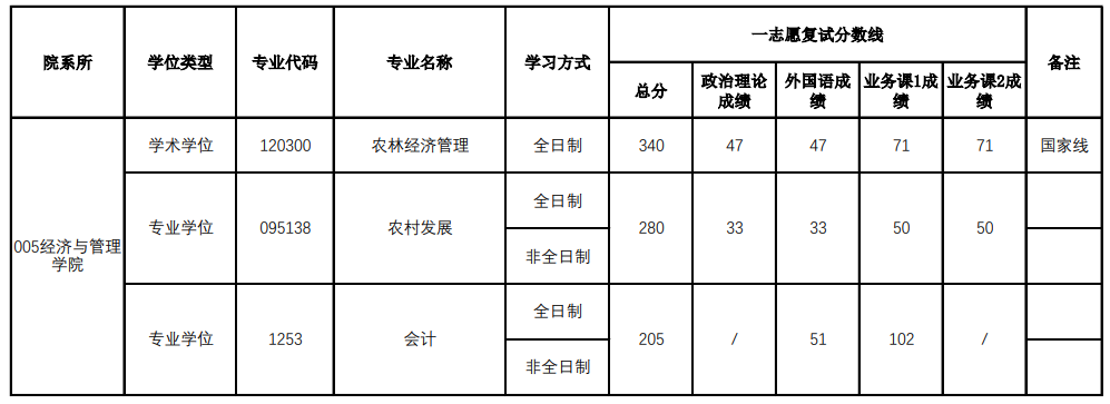 2023年考研工作进入复试阶段,2023河南农业大学经济与管理学院考研复试分数线已经发布。高顿考研为大家整理了2023河南农业大学经济与管理学院考研复试分数线的具体情况,对于报考的同学有很大的参考意义,希望对大家有所帮助!